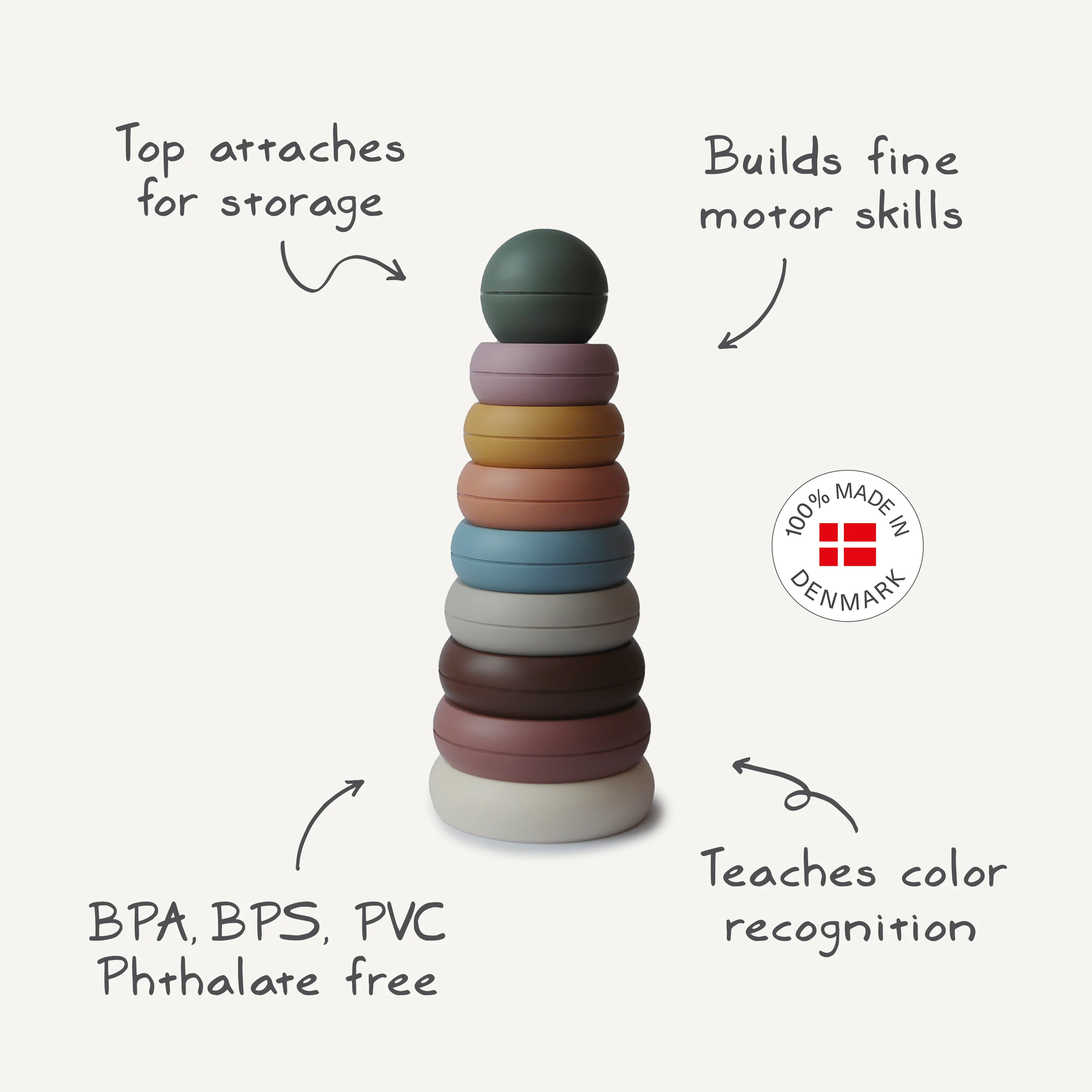 Made from 100% non-toxic, BPA and phthalate free plastic, these beautiful stacking rings are fun and engaging for your baby to look at, while stacking and grasping the pieces helps them develop their organization and motor skills. Whimsical design and sophisticated color make these stacking rings a stylish addition to your home. This toy is part of our Danish Hygge collection.